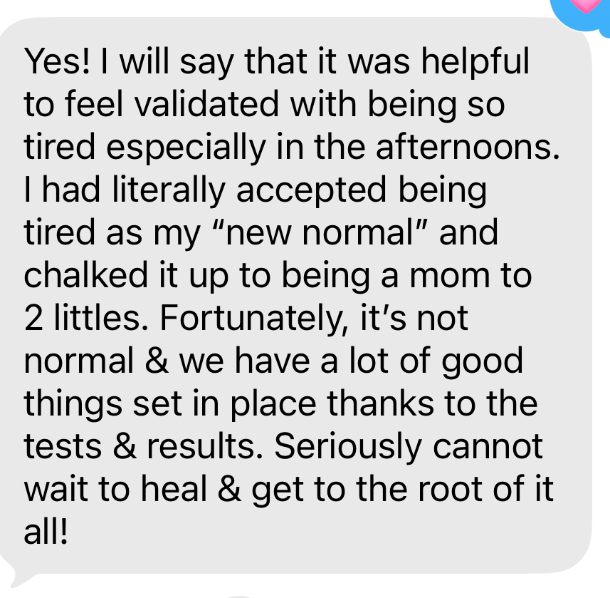 Your HTMA, GI Map, and hormone panel provide a deeper, more complete picture of your mineral balance, gut health, and hormone patterns—areas that are often overlooked or not fully explored.